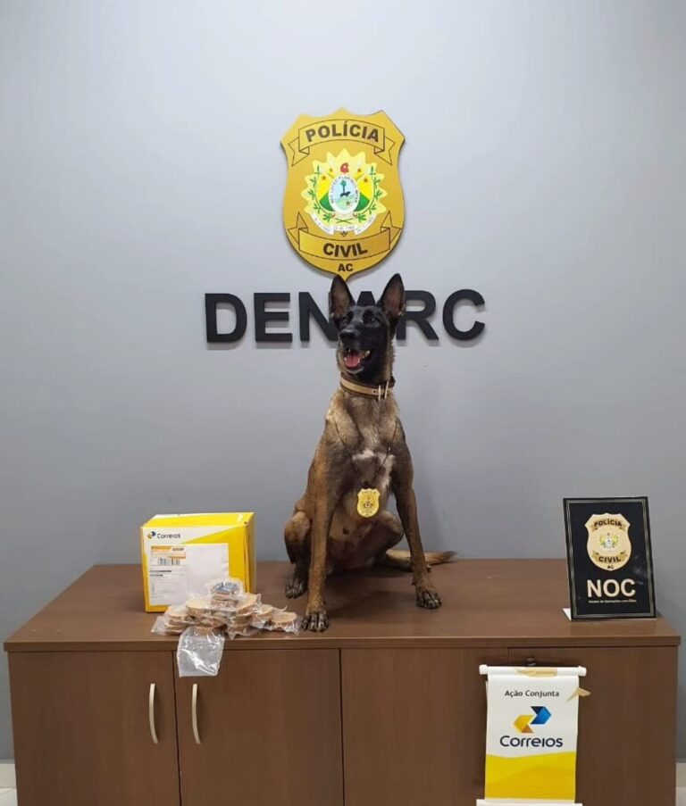 Cão farejador da Polícia Civil detecta drogas em agências dos Correios com destino ao Tocantins