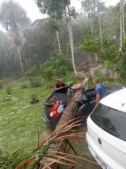 Carro é atingido por buritizeiro durante temporal no Ramal dos Bombeiros em Cruzeiro do Sul; Ninguém se feriu