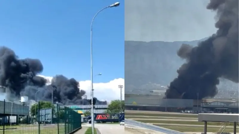 INCÊNDIO ATINGE GALPÃO NO AEROPORTO DO GALEÃO NO RIO DE JANEIRO