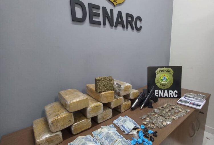 Após um meticuloso trabalho investigativo iniciado em janeiro deste ano, a Polícia Civil do Acre (PCAC), por meio da Delegacia de Repressão ao Narcotráfico (DENARC), efetuou a prisão de dois indivíduos envolvidos no tráfico de drogas em uma residência no Bairro Alto Alegre. A ação policial ocorreu na manhã desta quinta-feira, 21.