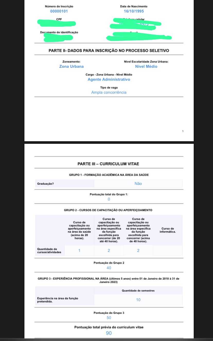 Os reclamantes também informaram que ao fazer a inscrição chega a seu email a pontuação prévia do curriculum vitae e na pontuação que foi divulgado esta totalmente diferente. Vale ressaltar que cabe recurso para as reclamações de pontuação.