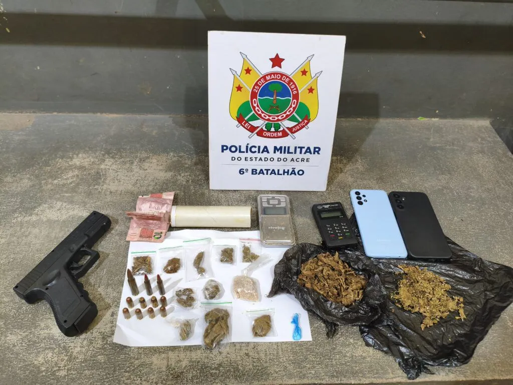 A ação foi conduzida pelo 6º Batalhão da Polícia Militar (6º BPM) e resultou na prisão em flagrante de um indivíduo civil, além da apreensão de entorpecentes, uma réplica de pistola e três cartuchos intactos dos calibres 5,56 mm e 7,62 mm, ambos de uso exclusivo das Forças Armadas.