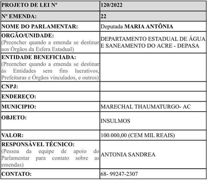 Com emenda da deputada Maria Antônia, Saneacre retorna as obras de extensão da rede de água em Marechal Thaumaturgo