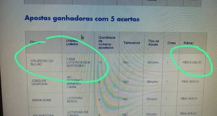 Cruzeiro do Sul, Apostadores acertam quina e levam R$ 202 mil na Mega-Sena