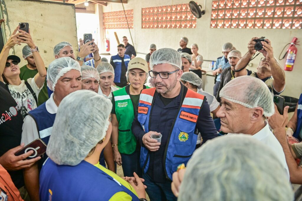 Em companhia do secretariado, de agentes públicos e do prefeito de Rio Branco, Tião Bocalom, Cameli visitou as estruturas do parque, que tem atendido às famílias desabrigadas na capital.