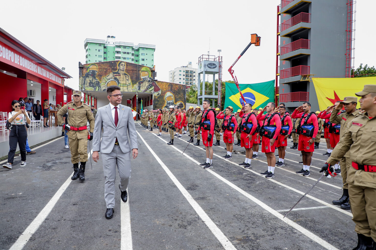 O governador Gladson Cameli participou na tarde desta quarta-feira, 21, de uma solenidade no Quartel do Comando Geral do Corpo de Bombeiros Militar do Estado do Acre, em Rio Branco. O evento marcou a entrega de um veículo com plataforma elevada, equipamentos de salvamento, lançamento de cursos e o anúncio da reforma do canil da instituição, todos esses investimentos somam R$ 5,1 milhões, fortalecendo o CBMAC e beneficiando os militares estaduais em condições ainda melhores para o desempenho de suas funções.
