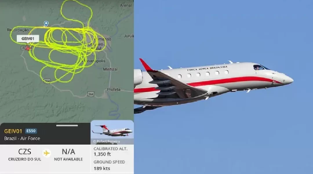 Jato da Força Aérea realiza voos em círculos em cima de Cruzeiro do Sul