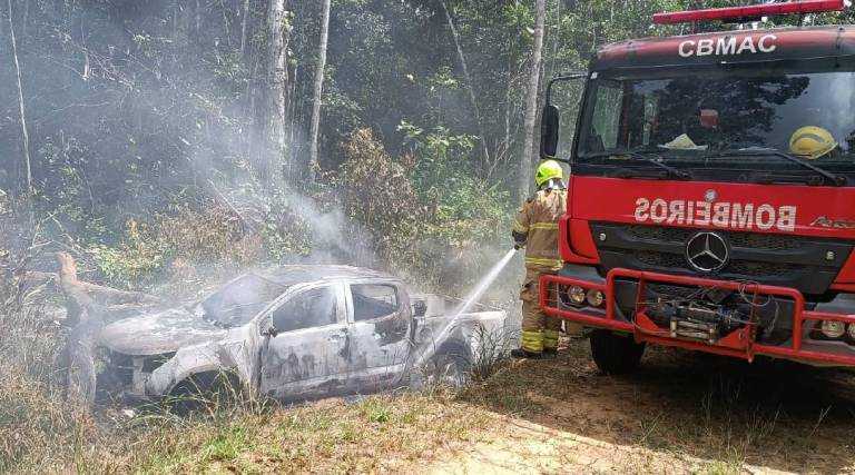 Na Vila Assis Brasil carro pega fogo após cair em vala “perca total”