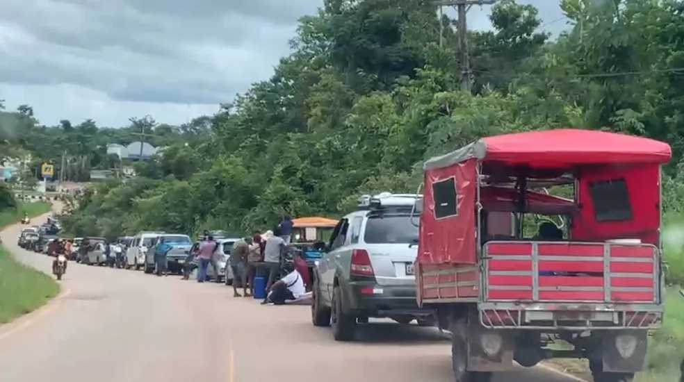 No Acre, Peruanos voltam a formar fila quilométrica em busca de combustível no único posto da cidade