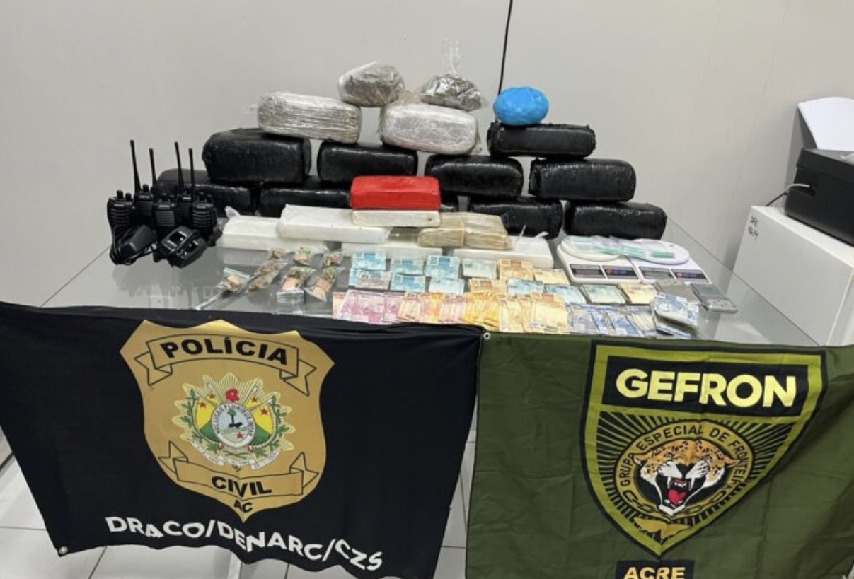 Operação integrada apreende mais de 20 quilos de drogas e quase R$ 15 mil em Cruzeiro do Sul