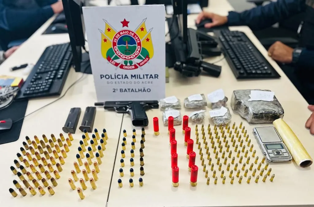 PM prende homem com arma de fogo, drogas e mais de 200 munições de calibres variados
